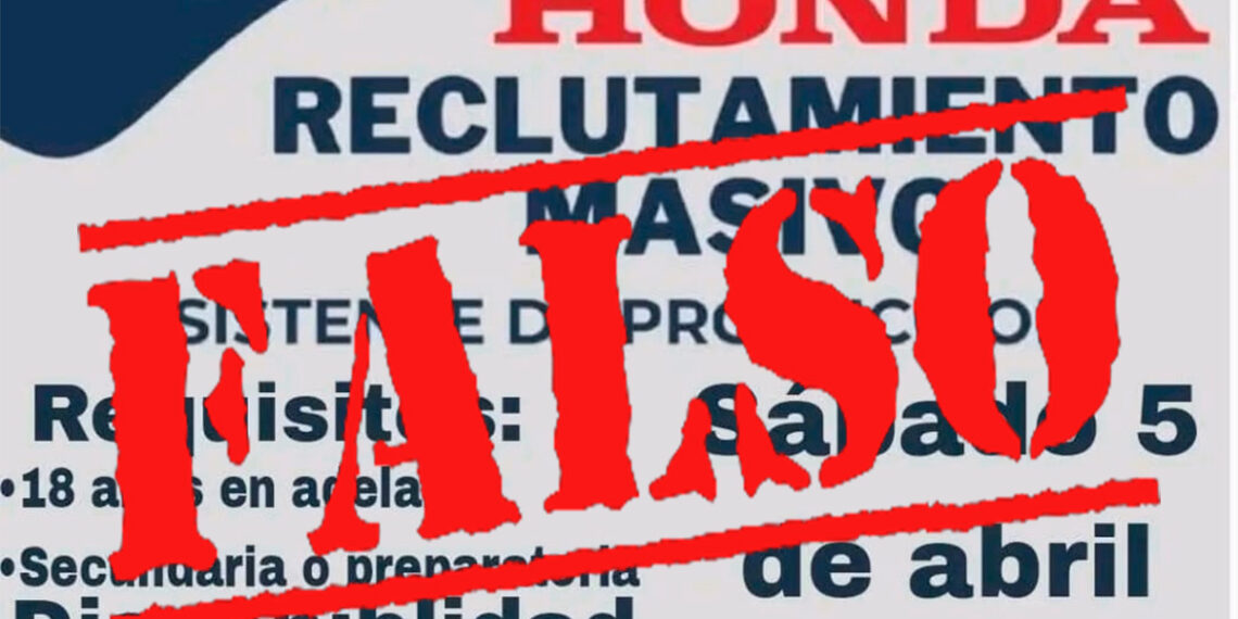 Guanajuato- Honda de México ha emitido una alerta urgente a la ciudadanía sobre un falso anuncio de reclutamiento masivo que circula en redes sociales. La empresa desmintió categóricamente cualquier vínculo con esta información y exhortó a la población a no caer en engaños.