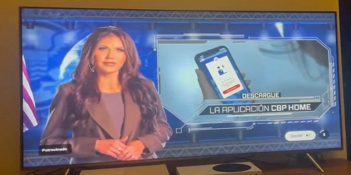 El anuncio está doblado al español y, al igual que en el que fue difundido por la cadena Televisa en abril, está protagonizado por la secretaria de Seguridad Nacional, Kristi Noem, quien llama a los migrantes indocumentados a utilizar la aplicación CBP Home para autodeportarse y así “evitar multas y encarcelamiento”.