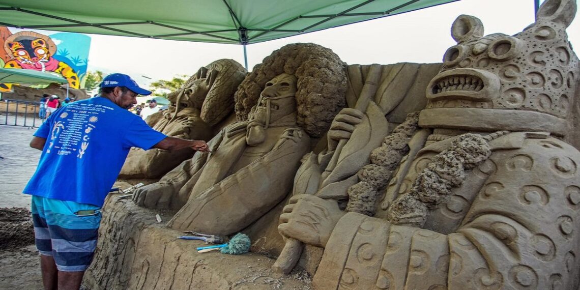 Artistas internacionales elaboran esculturas gigantes de arena en Acapulco