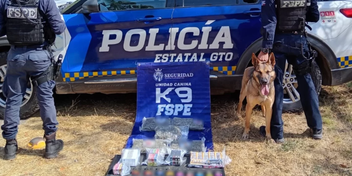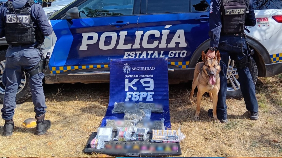 La Unidad Canina K9 de las Fuerzas de Seguridad Pública del Estado (FSPE) aseguró 49 vapeadores con presunta marihuana durante un operativo de inspección en una empresa de paquetería, como parte de las acciones para prevenir el uso de servicios de mensajería en la distribución de drogas en Guanajuato.