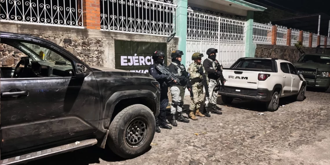 Acciones coordinadas entre fuerzas estatales y federales permitieron decomisar cartuchos, equipo táctico y más de 150 dosis de droga en distintos puntos del municipio