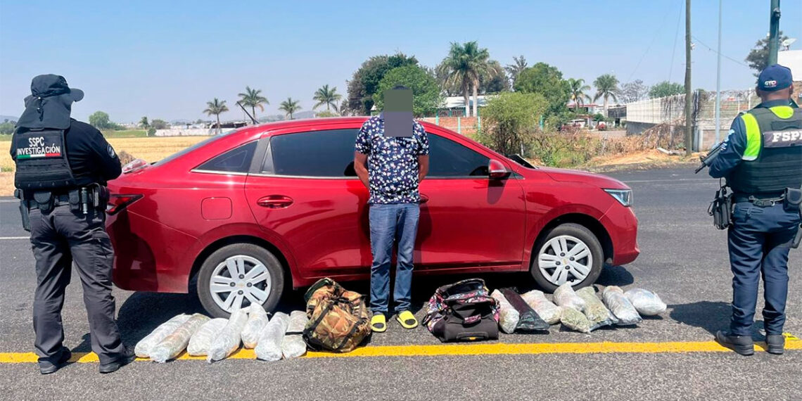 El operativo se llevó a cabo en el kilómetro 102+850 de la carretera Morelia-Salamanca, a la altura del entronque con Valtierrilla, en dirección a Morelia. Durante labores de inspección y control vehicular, los agentes detectaron un automóvil Chevrolet rojo con cristales polarizados que impedían ver el interior del vehículo. Al realizar una inspección preventiva, localizaron en el interior una maleta verde con siete paquetes de vegetal verde y una maleta rosa con ocho paquetes adicionales, ambos con características propias de la marihuana.