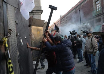 Momentos antes de que se llevara a cabo la conferencia mañanera de la presidenta docentes intentaron entrar al Palacio Nacional.
