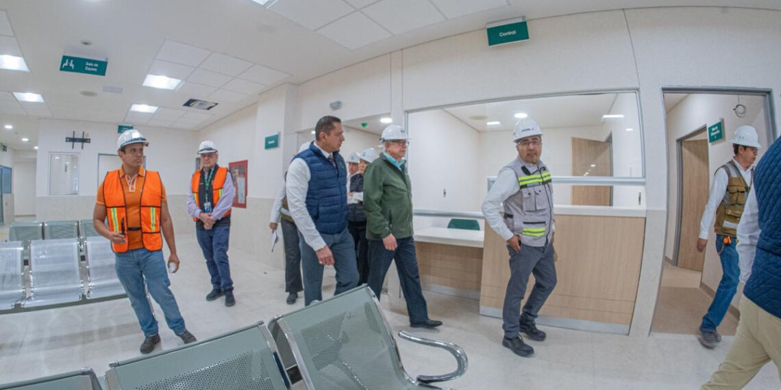 Gaviño Ambriz acompañado del delegado en la entidad, doctor Marco Antonio Hernández Carrillo, así como integrantes del Comité Ciudadano representantes de los Sectores Patronal y Obrero y representantes de la empresa encargada de la construcción del nuevo hospital, supervisaron la obra, que cuenta con una superficie de terreno de más de 31 mil metros, de los cuales más de 22 mil, son de edificación.