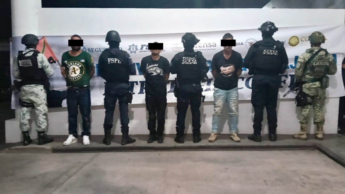 Los detenidos fueron identificados como Julio ‘N’, de 54 años; Víctor ‘N’, de 30; y Juan José ‘N’, de 31 años, originarios de Villagrán e Irapuato. Según la dependencia, están vinculados con diversos hechos de violencia ocurridos en la zona, y formaban parte activa de la estructura criminal del CSRL.