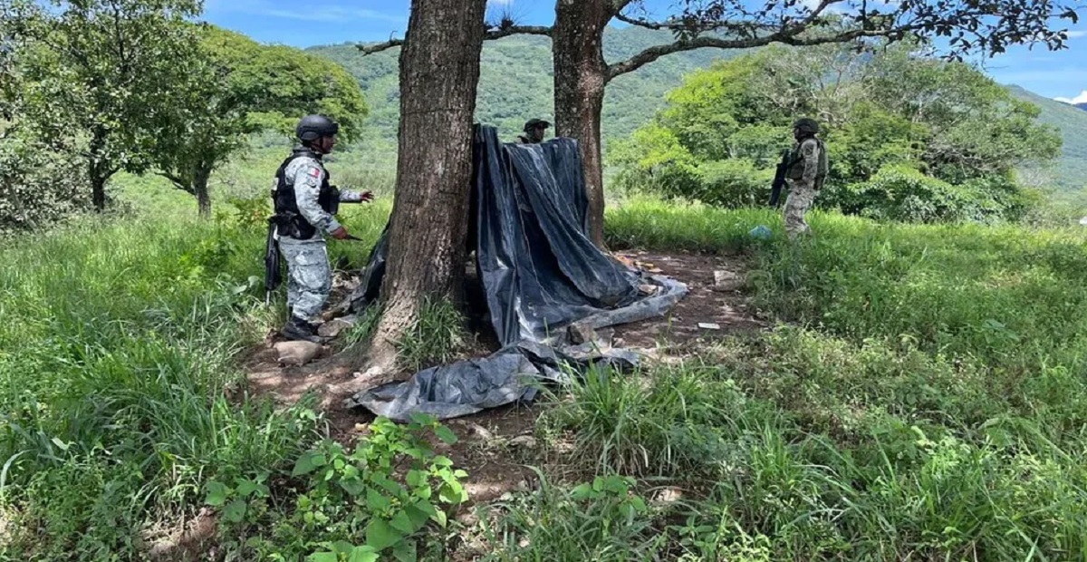 Posteriormente, en otro operativo para combatir al crimen, elementos del Ejército mexicano y de la Guardia Nacional desmantelaron un narcocampamento en la sierra de Chinicuila.