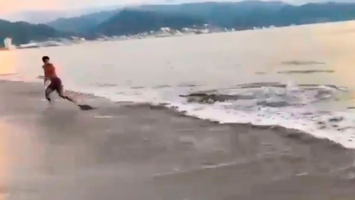 En las imágenes se observa que el muchacho se encontraba en la orilla del mar cuando el reptil emergió a escasos metros de distancia. El cocodrilo avanzó hacia él, pero el joven logró salir del agua de inmediato, evitando ser alcanzado. Testigos en el lugar le habían advertido previamente de la presencia del animal, lo que permitió su rápida reacción.