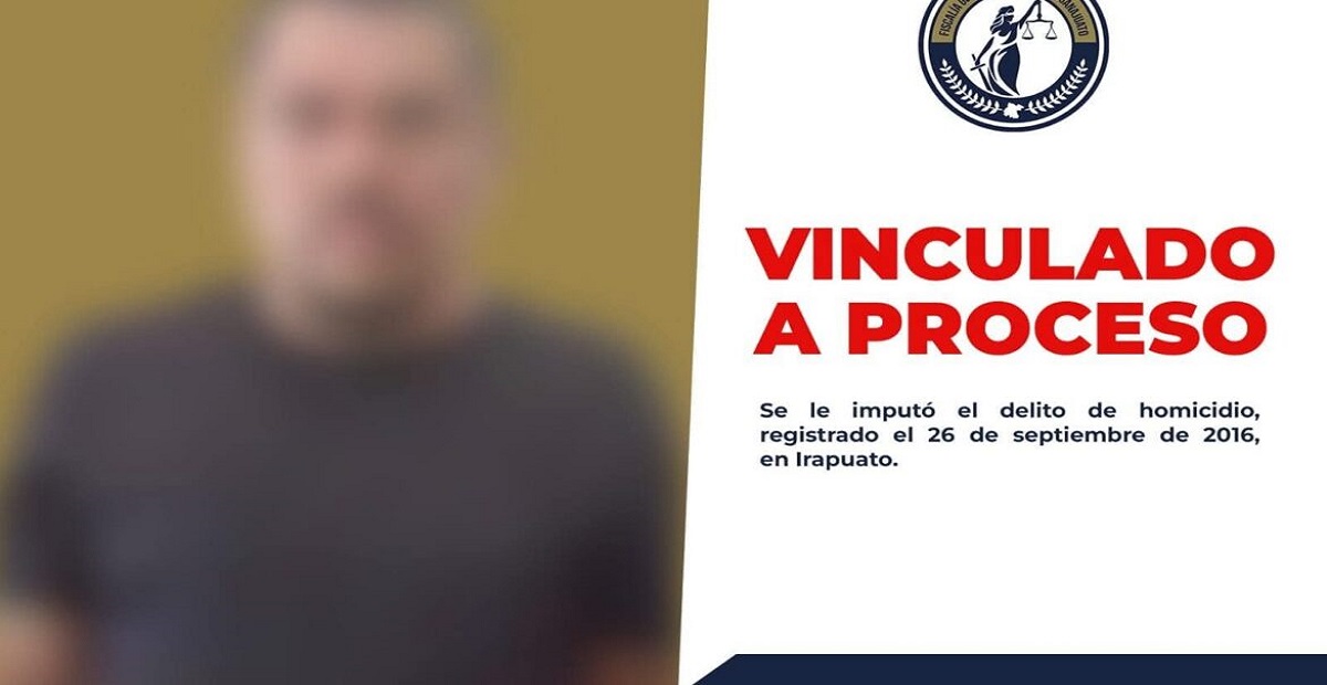 Irapuato.- Agentes de Investigación Criminal capturaron con orden de aprehensión a un sujeto identificado como Víctor Manuel y en continuación de una audiencia inicial, la Jueza resolvió vincularlo a proceso penal como presunto responsable del delito de homicidio en agravio de un hombre en la ciudad de Irapuato.