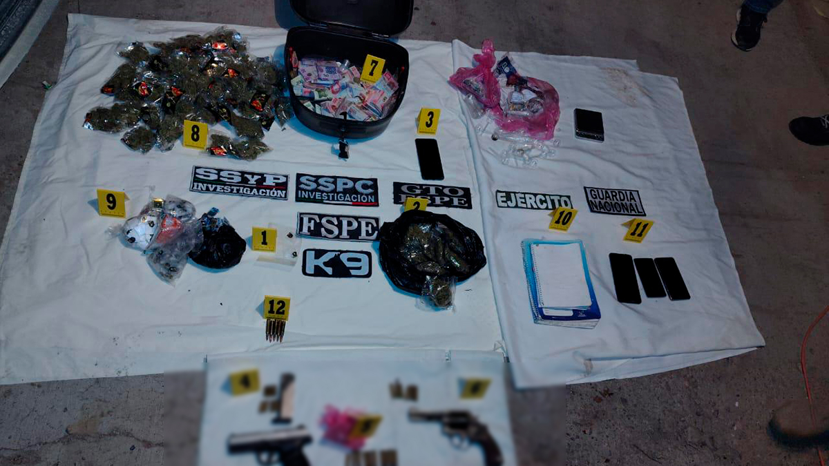 El operativo fue encabezado por la Secretaría de Seguridad y Paz del Estado de Guanajuato, en coordinación con la Fiscalía General de la República (FGR) y diversas fuerzas federales, como parte de una investigación por delitos contra la salud y portación de armas de uso exclusivo del Ejército, así como posibles hechos de extorsión.