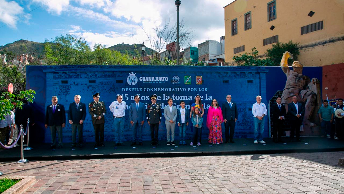 Previamente la Gobernadora de la Gente, Libia Dennise, encabezó el desfile cívico-militar conmemorativo del 215 aniversario de la Toma de la Alhóndiga de Granaditas, en Guanajuato capital.