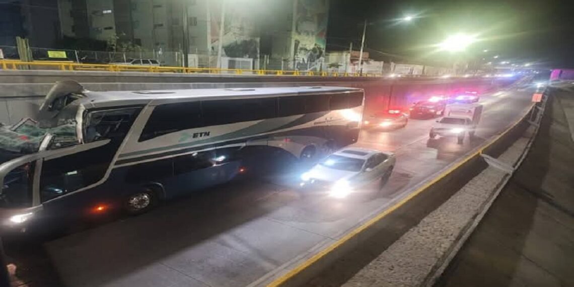 Fue alrededor de las 5:00 de la mañana de este lunes cuando se registró el accidente del camión de 2 pisos de la empresa ETN, cuyo conductor, al parecer no calculó la altura y terminó chocando, a la altura de la colonia El Duraznal.