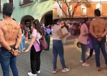 Un hombre que participaba en la movilización con un mensaje de apoyo a las mujeres fue señalado públicamente por una...