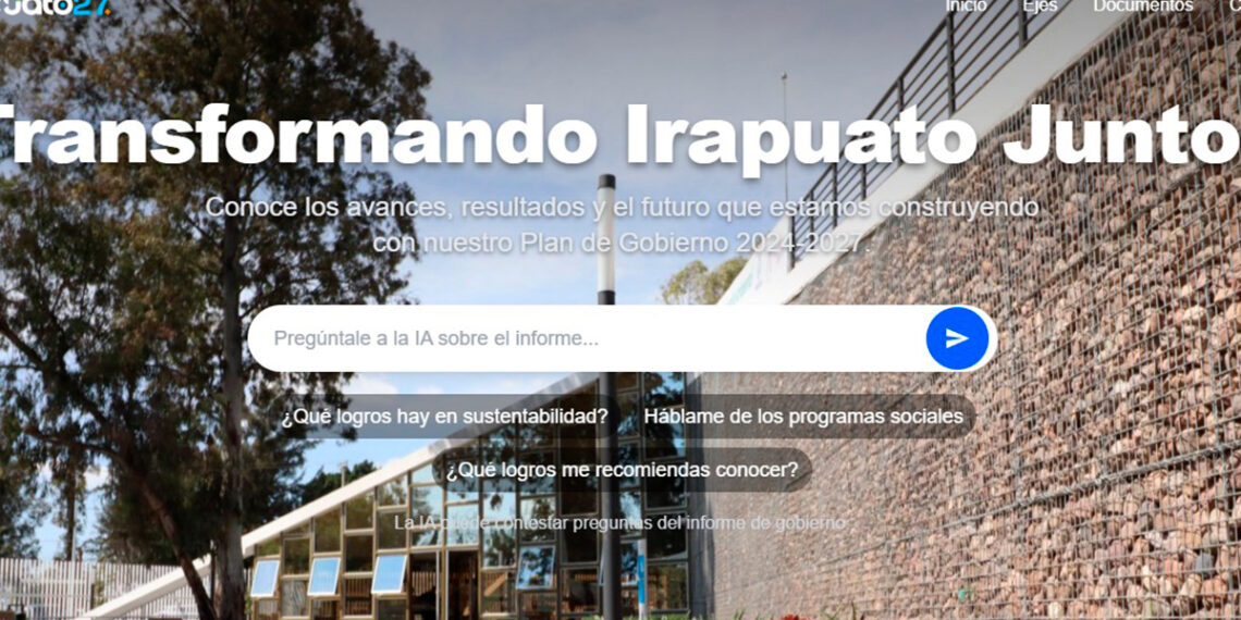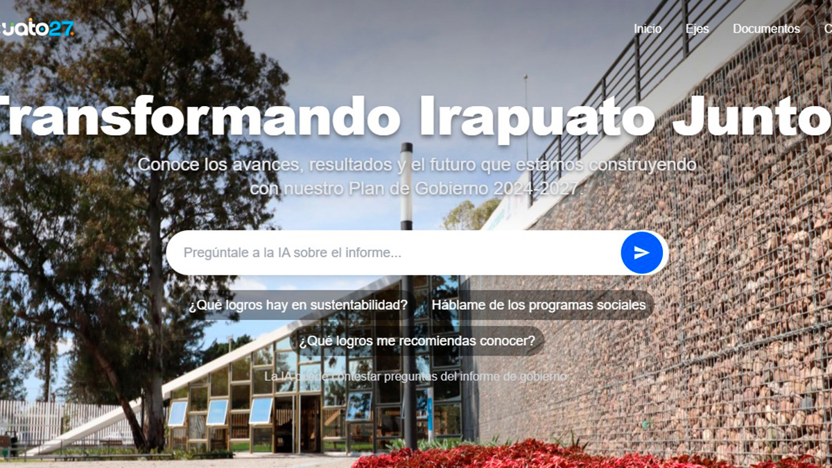 A través de esta herramienta, se pretende que todos los irapuatenses tengan acceso a la información relacionada con los avances de Irapuato, con la incorporación de inteligencia artificial, las consultas son realizadas de manera ágil y precisa, además ofrece una sección de preguntas con las que facilita y dirige la búsqueda.