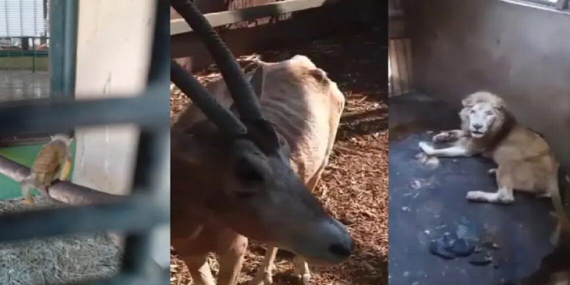 En las fotografías y videos subidos a X y Facebook, se ven ejemplares de vida silvestre en los huesos, porque se recortó el presupuesto para su alimentación.