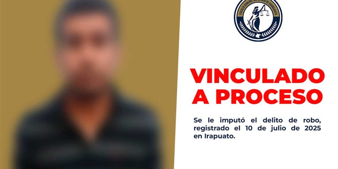 Irapuato— La Fiscalía de Guanajuato informó que Daniel Alberto ‘N’ permanecerá en prisión preventiva luego de que un juez de control validara su detención y lo vinculara a proceso por el delito de robo calificado.
