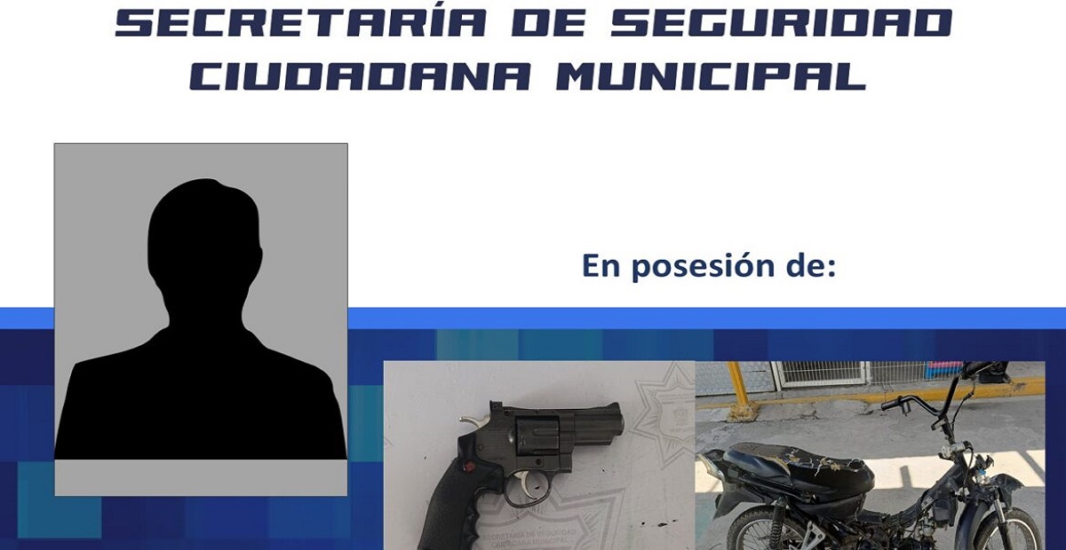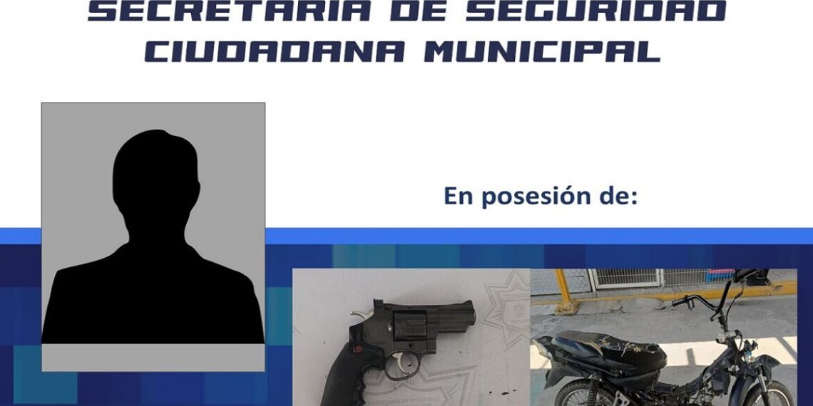 Irapuato.- Integrantes de la Dirección de Policía Municipal, detuvieron a un menor de 15 años de edad al asegurarle entre sus pertenencias, un arma de fuego con características aparentes de uso deportivo.