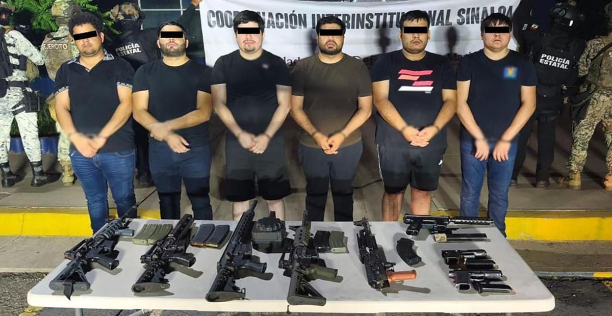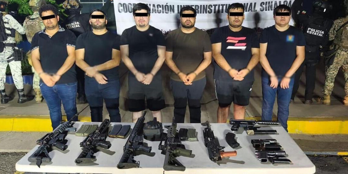 En Culiacán, #Sinaloa, en una operación estratégica de @sspsinaloa1 y @Defensamx fueron detenidos 6 integrantes de una célula criminal vinculada con homicidios, narcotráfico, privación ilegal de la libertad y agresiones armadas. Se aseguraron 8 armas de fuego.