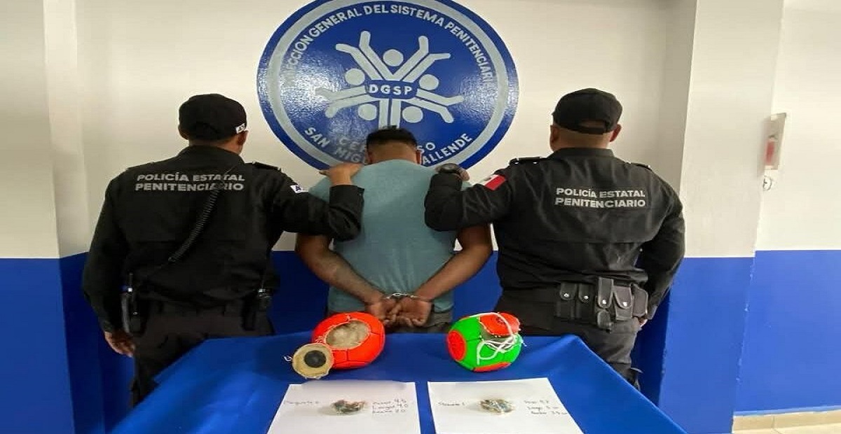 San Miguel de Allende.- La Secretaría de Seguridad y Paz del Estado de Guanajuato, a través de la Dirección General del Sistema Penitenciario, detuvo a un hombre que ocultó en balones de futbol varias dosis de supuesta droga, conocida como cristal, con la intención de ingresarla al Centro Estatal de Prevención y Reinserción Social (Ceprereso) de San Miguel de Allende.