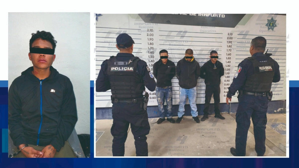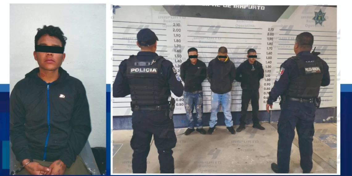 Irapuato- Elementos de la Secretaría de Seguridad Ciudadana Municipal de Irapuato detuvieron a cuatro personas por su presunta participación en robos a dos establecimientos comerciales en hechos distintos, como parte de las acciones de vigilancia y prevención del delito.