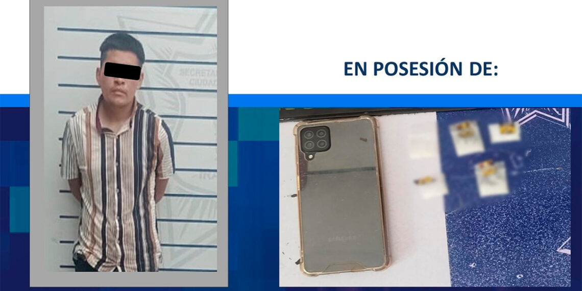 Irapuato- La Secretaría de Seguridad Ciudadana de Irapuato informó sobre la detención de Miguel Ángel ‘N’, de 23 años, quien fue sorprendido con cinco envoltorios de presunto cristal durante recorridos de vigilancia en la colonia Las Huertas, primera sección.