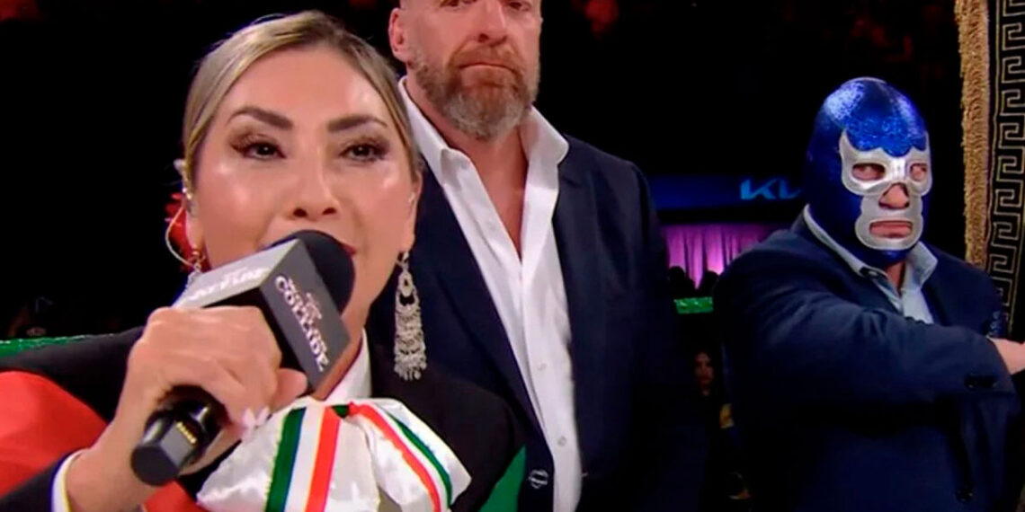 #Viral 🎤I Deyra Barrera, cantante sonorense, falló al entonar el Himno Nacional Mexicano en el evento Worlds Collide de WWE y AAA, celebrado el 7 de junio en el Kia Forum de Inglewood, California. 🇲🇽😱