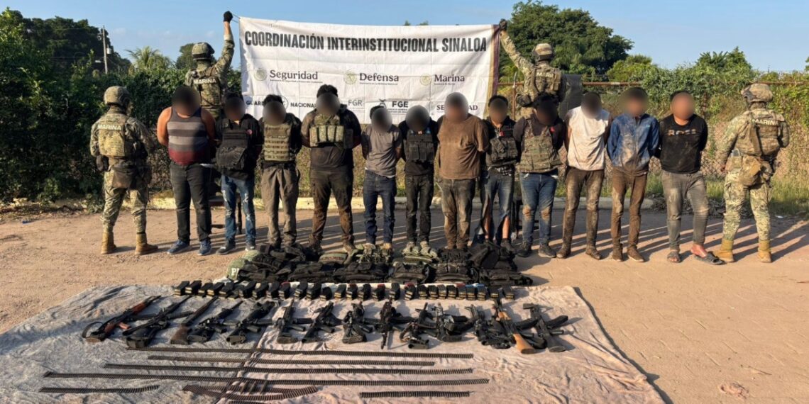 Sinaloa.- Autoridades mexicanas arrestaron a 13 presuntos criminales ligados al Cártel del Pacífico en Sinaloa, además de decomisarles armamento y vehículos, luego de repeler una agresión.