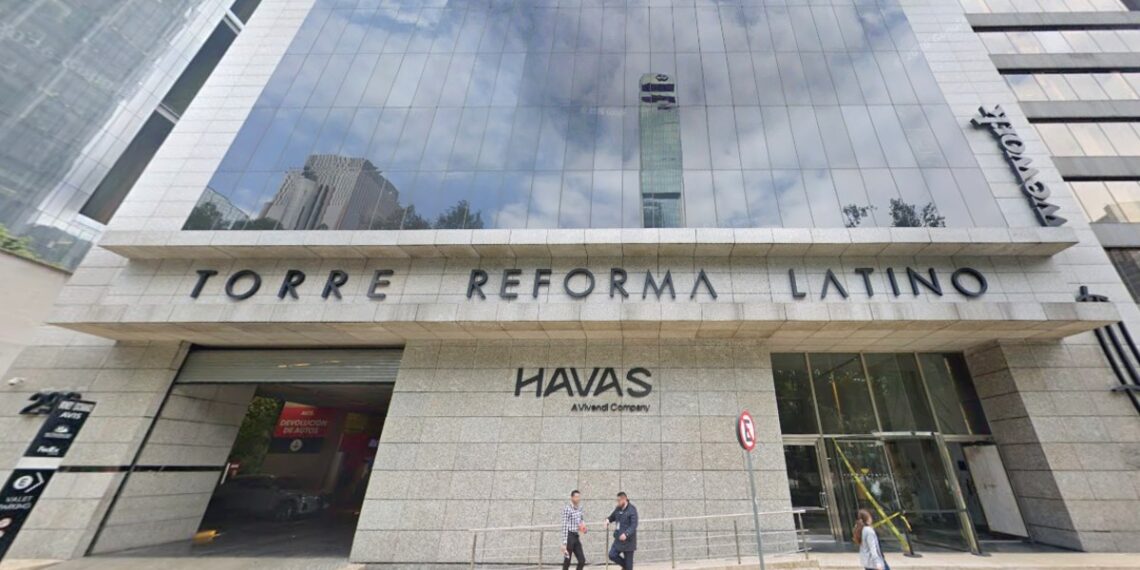 La Torre Reforma Latino se ubica sobre avenida Reforma. Es un conglomerado de oficinas que tiene anuncios de las empresas Havas y WeWork.