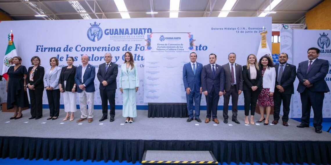 Guanajuato.- La Gobernadora de la Gente, Libia Dennise García Muñoz Ledo, encabezó la firma de acuerdos de colaboración con instituciones educativas, Poderes del Estado y organismos autónomos, con el objetivo de fortalecer la cultura cívica y democrática entre las y los estudiantes de nivel medio superior y superior.