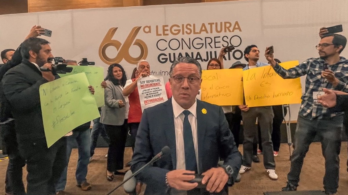 Previo al inicio del encuentro con diputados locales, un grupo de periodistas realizó una manifestación dentro del Congreso en protesta por las restricciones impuestas a la prensa durante la presentación del informe anual de la Fiscalía.