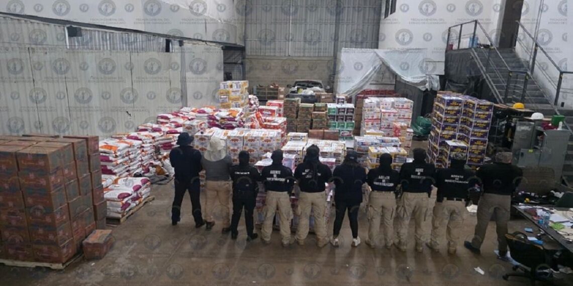 Agentes de Investigación Criminal, en coordinación con elementos de la Policía Municipal, ejecutaron la orden judicial y aseguraron un importante volumen de insumos industriales