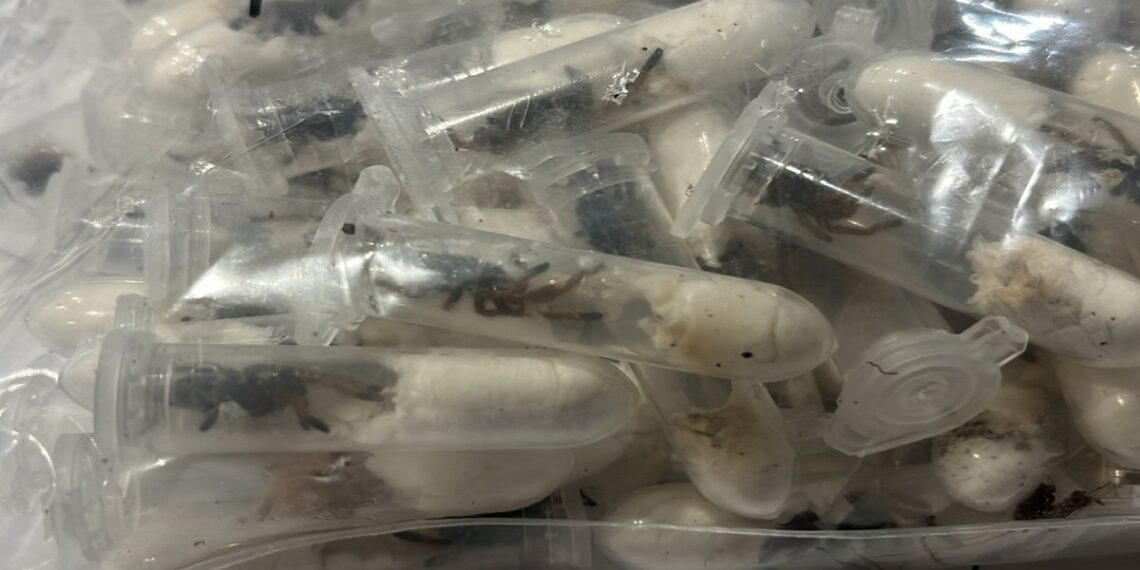 Añadió que los oficiales suelen sorprenderse a menudo con el contenido de paquete prohibidos de todo el mundo, pero descubrir 1,500 contenedores de plástico con crías de tarántulas “dejó atónitos hasta a los más experimentados”.