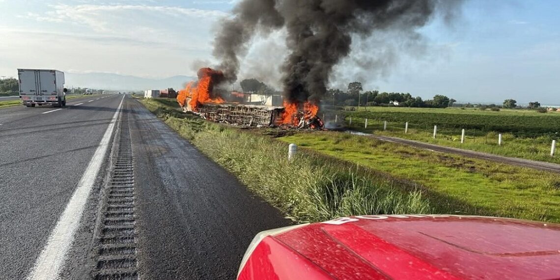 De acuerdo con los primeros reportes, la unidad habría sufrido una falla mecánica, lo que provocó que el conductor perdiera el control, saliera del camino y volcara, generando el incendio.
