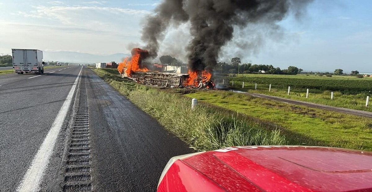 El percance ocurrió en el carril con dirección de Querétaro a San Luis Potosí y fue atendido por elementos del cuerpo de bomberos de San Luis de la Paz, con el apoyo de una pipa particular.