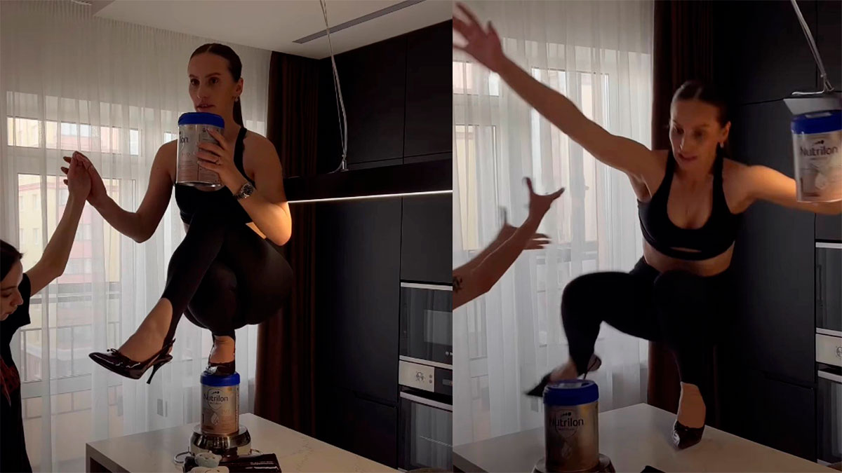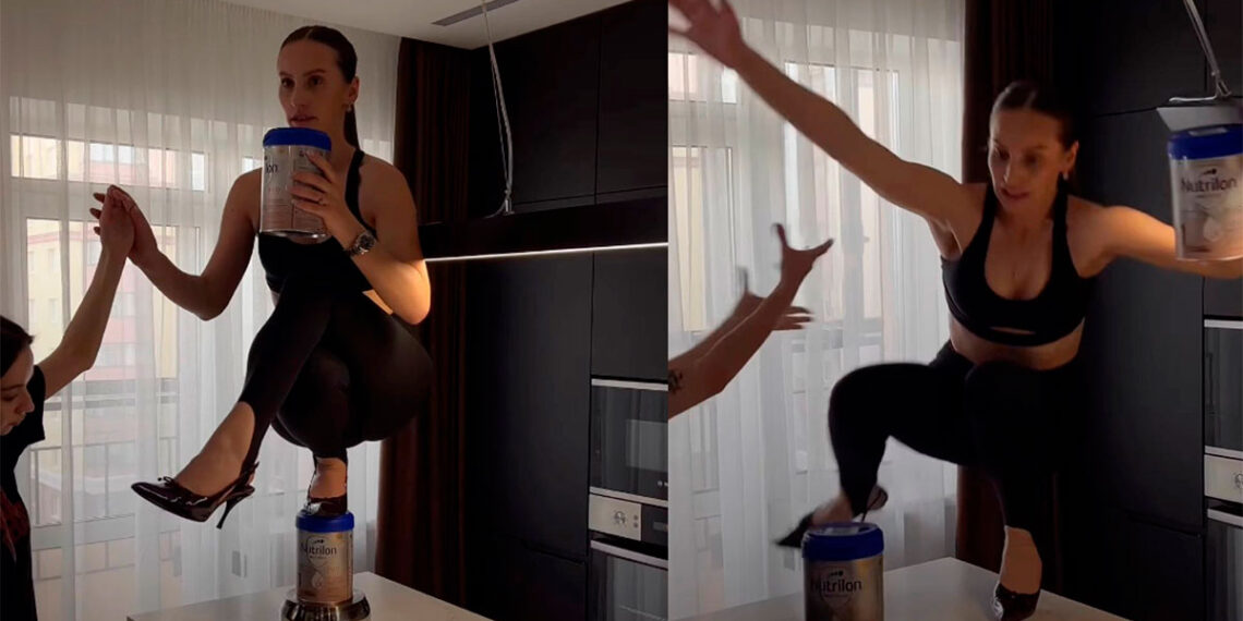 Mariana Barutkina, creadora de contenido, cayó desde una barra de cocina mientras grababa el “Stiletto Challenge”, popularizado por Nicki Minaj