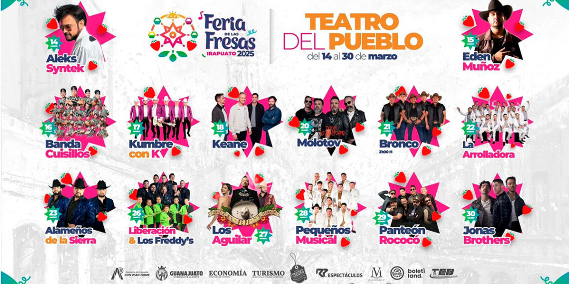 Irapuato- Irapuato está listo para hacer historia nuevamente con la edición 2025 de la icónica Feria de las Fresas, que se celebrará del 14 al 30 de marzo en las instalaciones del Inforum. Este año, el evento sorprenderá al público con la presentación de los Jonas Brothers y la banda británica Keane, junto con una diversa cartelera de artistas nacionales e internacionales que prometen encender el escenario.