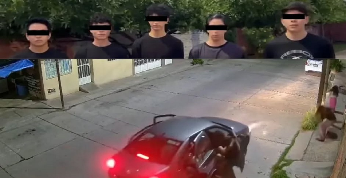 Aguascalientes.– Un grupo de cinco jóvenes amagó con privar de la libertad a dos menores en Aguascalientes. El momento fue captado por una cámara de seguridad y se viralizó en redes sociales.