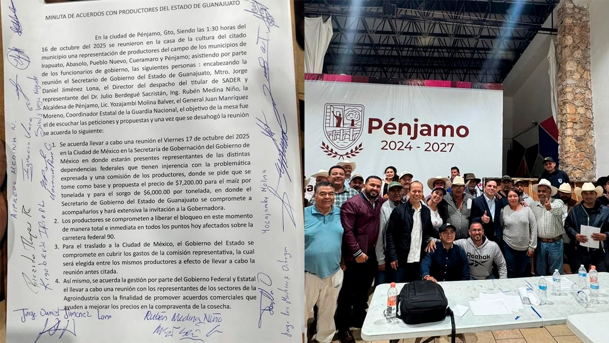 Como parte del acuerdo, se estableció una nueva reunión para este viernes 17 de octubre en la Secretaría de Gobernación, donde participarán dependencias federales relacionadas con el sector agroalimentario y una comisión de agricultores guanajuatenses.