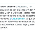Por su parte, Adán Augusto López, coordinador de Morena en el Senado, también ofreció una disculpa: