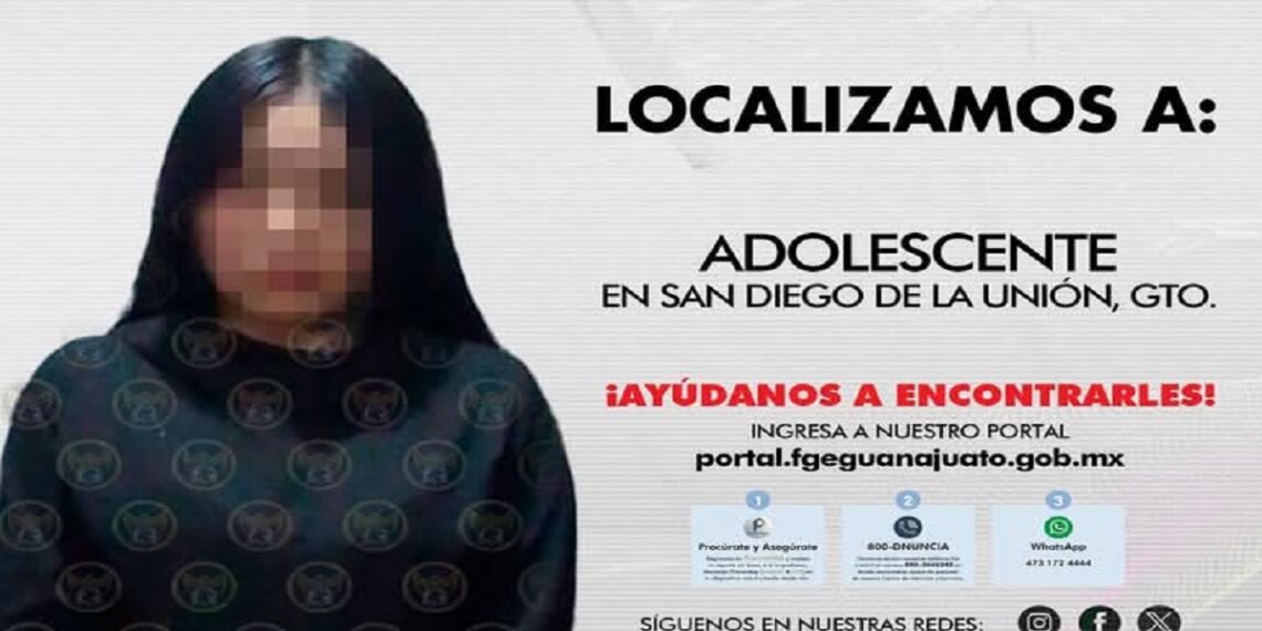 México,– La Fiscalía General del Estado de Guanajuato activó protocolos de búsqueda y localizó en Ciudad de México a una adolescente originaria de San Diego de la Unión, reportada como desaparecida.