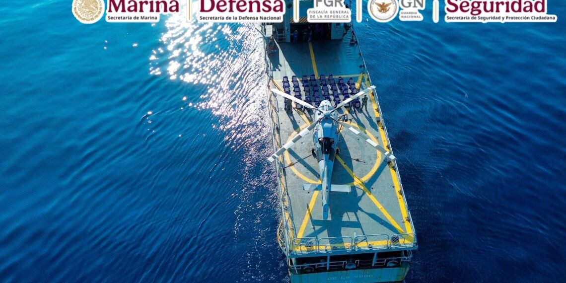 Michoacán.- En un operativo conjunto en el mar, fuerzas federales asestaron un duro golpe al narcotráfico al interceptar un cargamento de aproximadamente 2.5 toneladas de cocaína en las costas de Michoacán. La acción, liderada por la Marina, evitó que alrededor de cinco millones de dosis llegaran a las calles.
