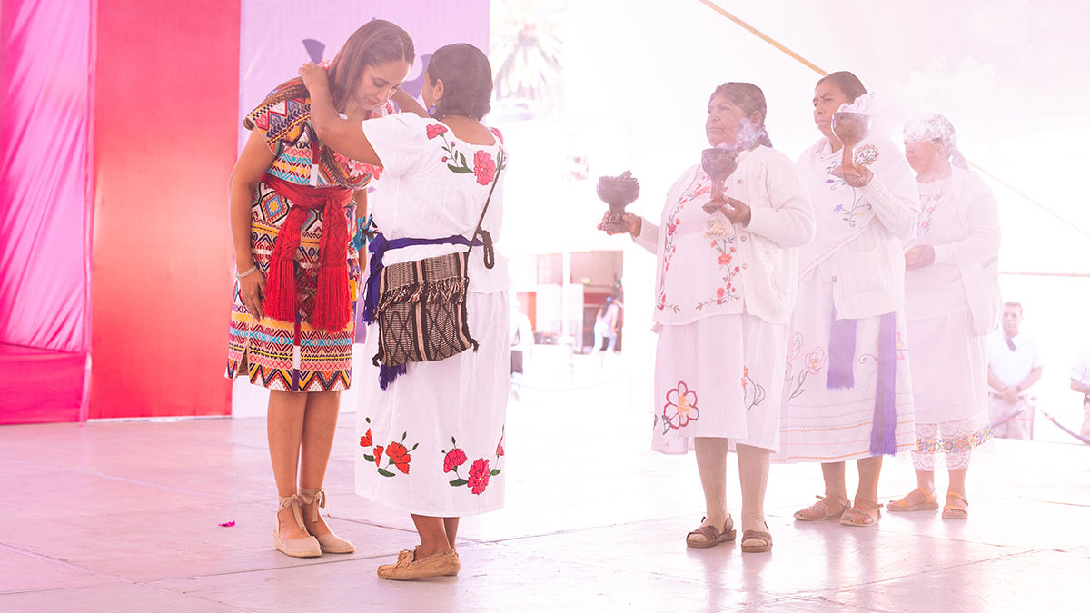 Al finalizar la ceremonia, la Mandataria Estatal degustó la gastronomía tradicional de la región y recorrió la exposición de artesanías y productos elaborados por los pueblos originarios. Además, en el escenario se celebró el Encuentro Estatal de Danzas,