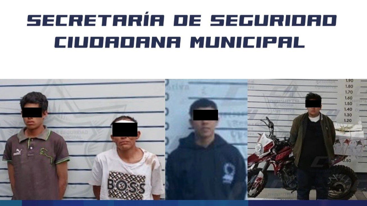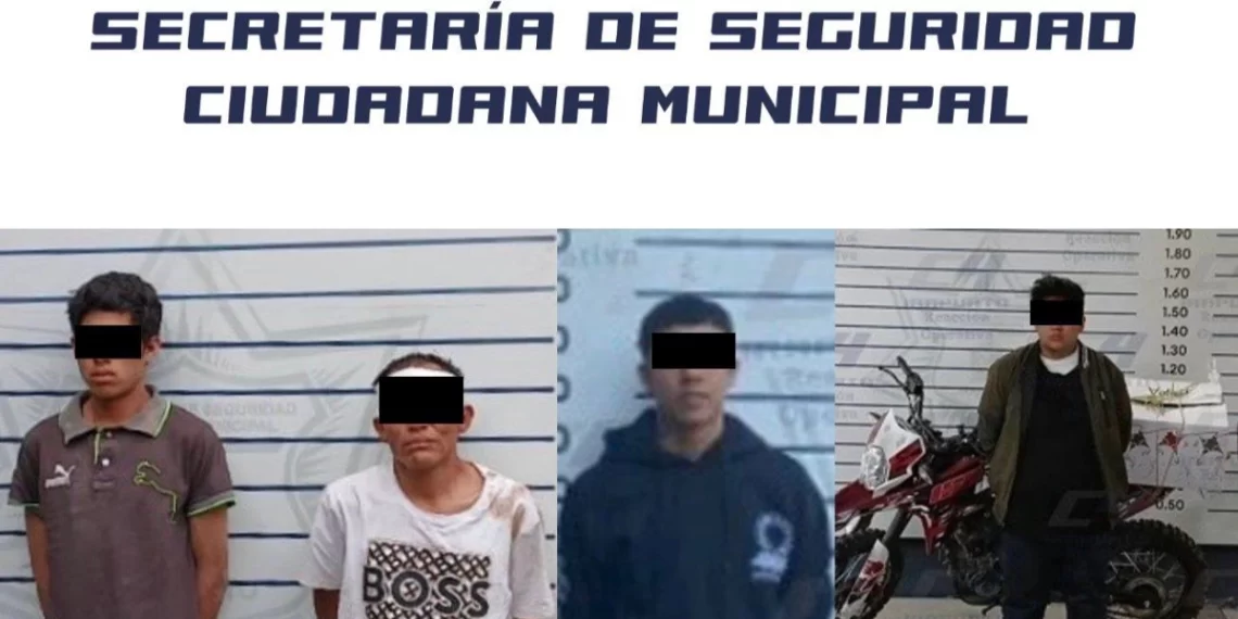 En un primer hecho, dos hombres que viajaban en una motocicleta sin placas y sin casco protector fueron detenidos en la colonia La Candelaria. Tras ignorar las indicaciones de los agentes municipales y emprender la huida, uno de ellos apuntó con lo que parecía ser un arma de fuego hacia los policías. Más adelante, entre las calles Pico de Pájaro y Guanajuato, los oficiales aseguraron a Edgar “N”, de 20 años, y a Jesús “N”, de 22, a quienes se les encontraron dos envoltorios de presunta marihuana y una réplica de arma de fuego. La corporación señaló que Jesús “N” cuenta con tres ingresos previos por faltas administrativas y merodeo de domicilios.