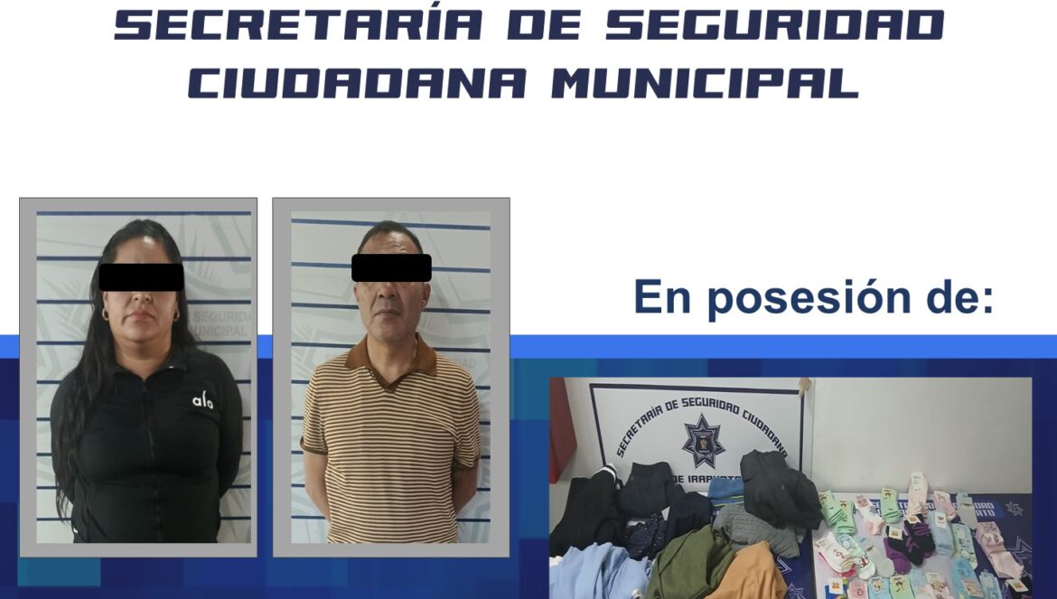 Por robo en plaza comercial, detienen a pareja de chilangos en Irapuato