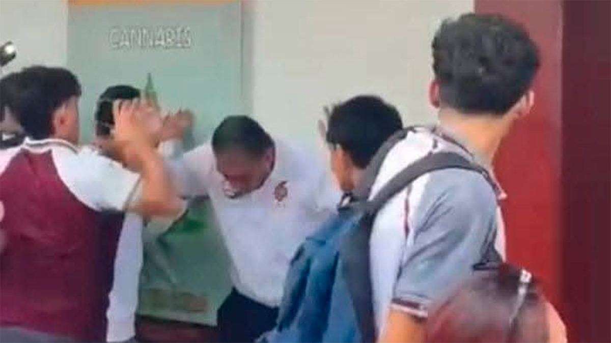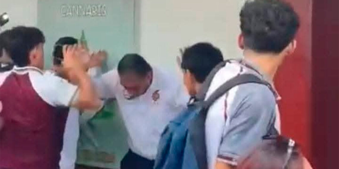 Entre gritos, uno de los estudiantes incitó a la violencia al gritar: “Agárrenlo a ver… por todos”, mientras golpeaban al director tirado en el césped.