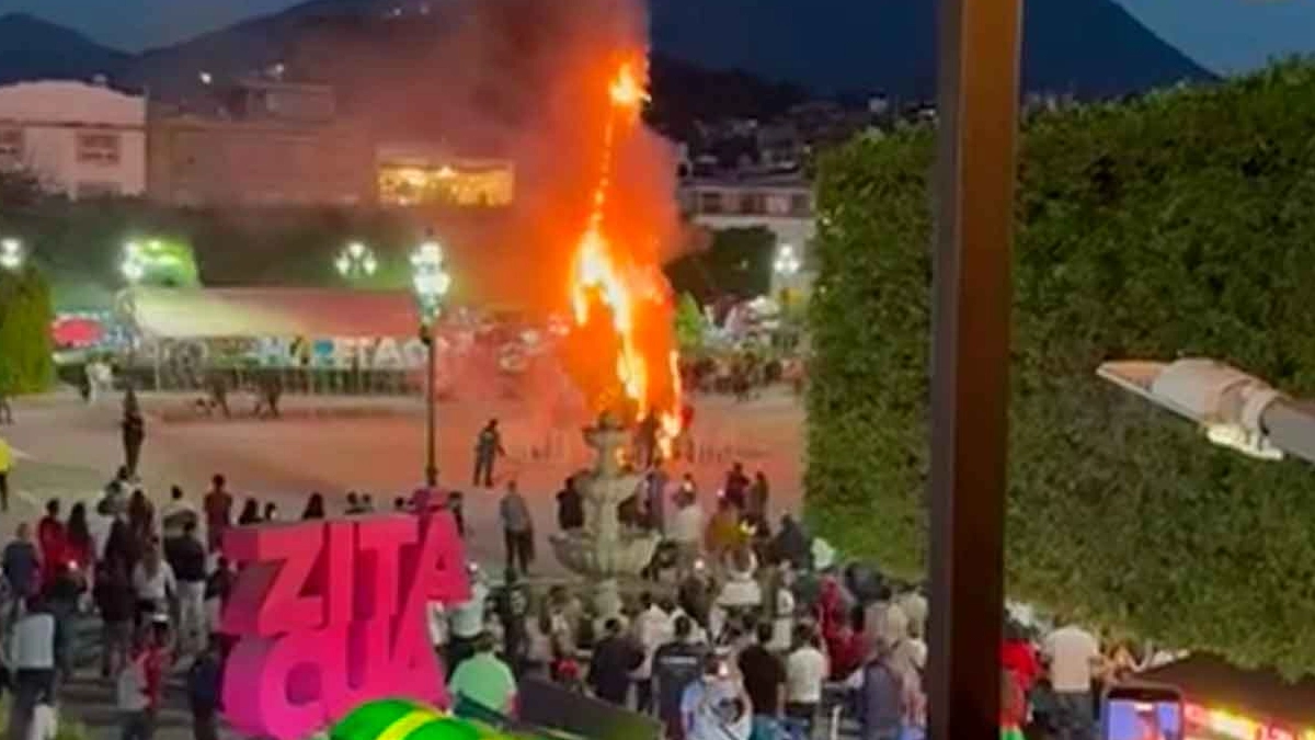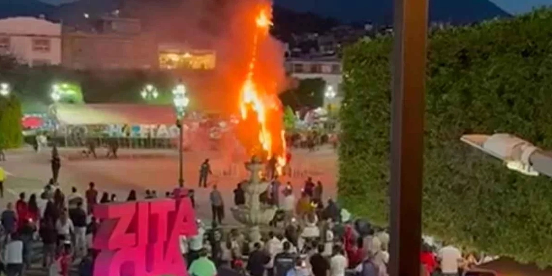 Michoacán- En Zitácuaro, Michoacán, una protesta ciudadana por el asesinato de Ángeles Esquivel, joven de 24 años, derivó en el incendio del árbol monumental de Navidad instalado en la plaza central. La víctima habría muerto a causa de disparos realizados por un agente de Tránsito Municipal el pasado 7 de diciembre.