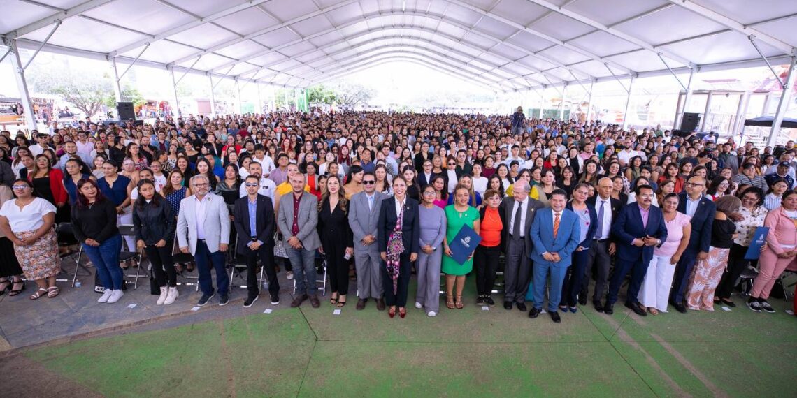 Fueron entregados 1 mil 325 nombramientos definitivos a docentes que, durante el ciclo escolar 2024-2025, han logrado obtener su plaza definitiva, con lo que se fortalece su estabilidad, certeza laboral y reconocimiento a su trayectoria.