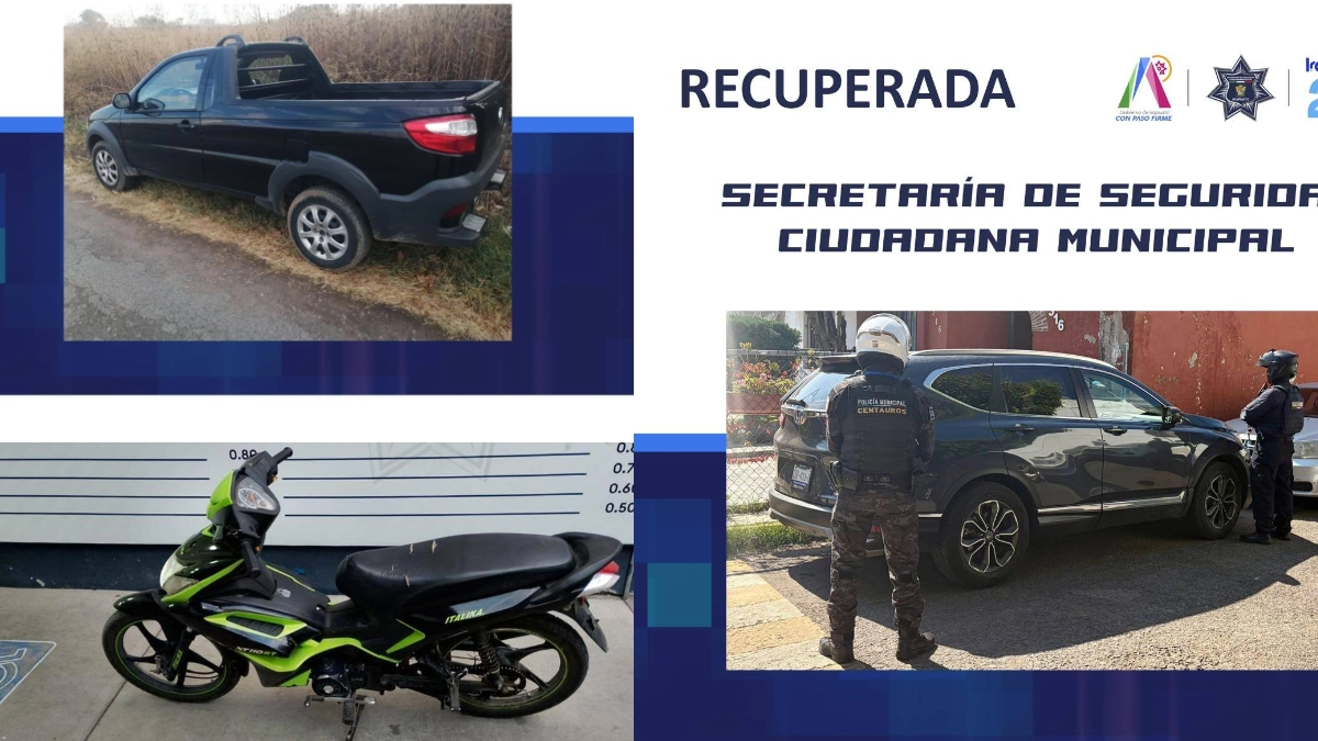 Irapuato- Como resultado de las acciones de prevención y vigilancia implementadas en distintos sectores del municipio, elementos de la Secretaría de Seguridad Ciudadana Municipal (SSCM) de Irapuato recuperaron dos camionetas y una motocicleta con reporte de robo, en hechos ocurridos por separado.