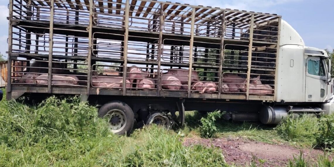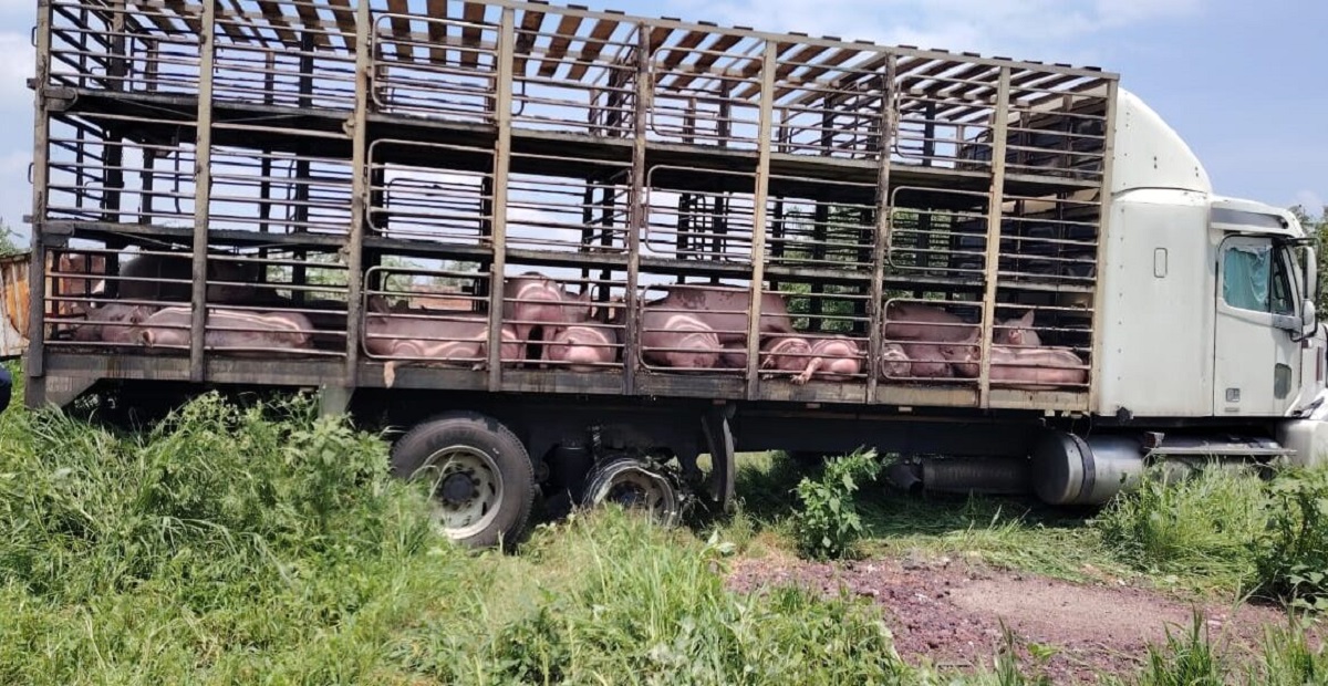 Abasolo.- Gracias a la coordinación entre autoridades de los 3 órdenes de gobierno, se logró recuperar 140 porcinos con un valor aproximado de 654 mil 360 pesos, que habían sido sustraídos de manera ilícita junto con un tractocamión tipo jaula.