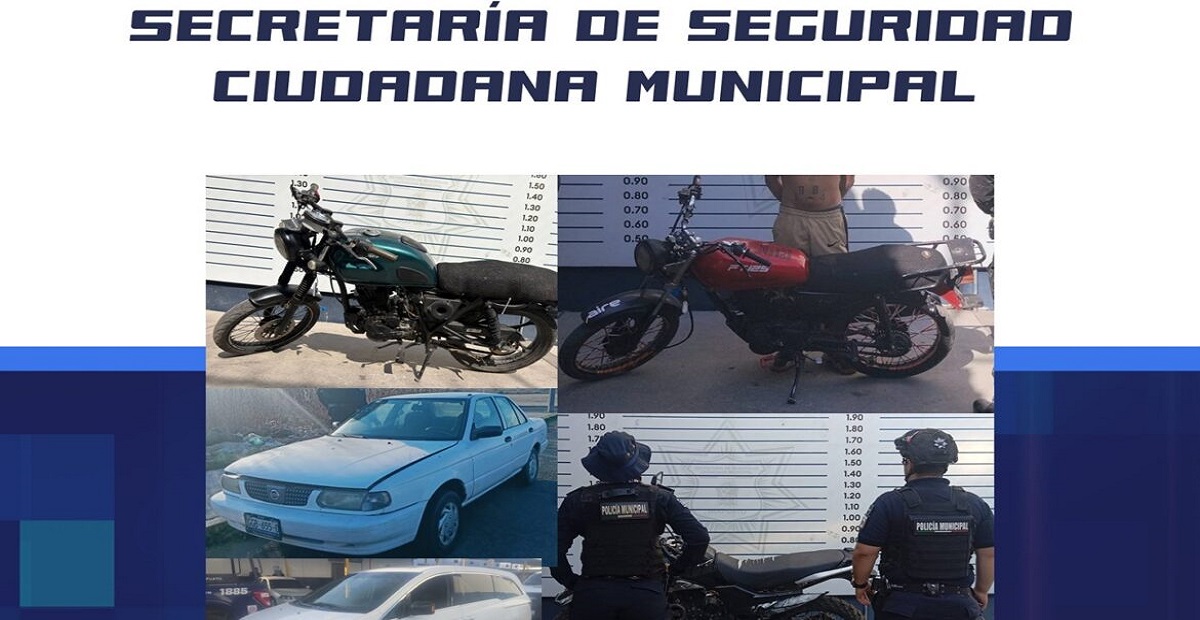 Irapuato.- Como resultado de los recorridos de prevención, vigilancia y operativos estratégicos, la Secretaría de Seguridad Ciudadana Municipal logró la recuperación de cinco vehículos con reporte de robo, dos automóviles y tres motocicletas, así como la detención de cuatro personas presuntamente relacionadas con estos hechos, en distintos puntos del municipio.