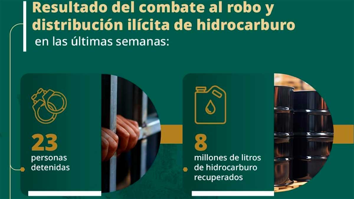 El funcionario federal destacó que, gracias al reforzamiento de labores de inteligencia e investigación, en las últimas semanas se logró el aseguramiento de grandes volúmenes de hidrocarburo robado, así como la detención de presuntos involucrados y el decomiso de vehículos y equipo utilizado para estas actividades ilícitas.